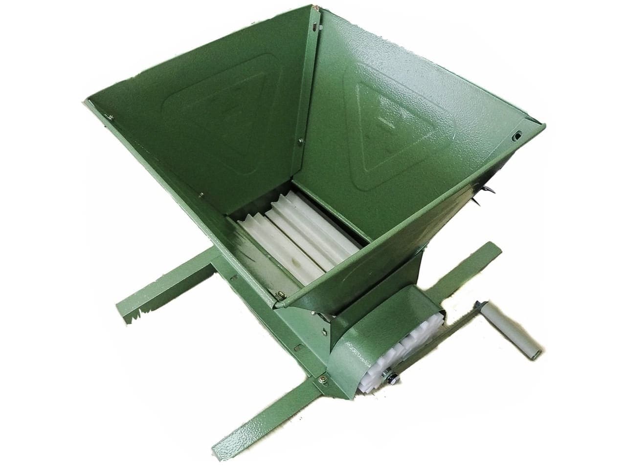 Мезга - оставшиеся после выжимки сока ягоды широко используется в виноделии, в качестве удобрений для растений и подкормок для животных. Дробилка состоит из металлического бункера объемом 16 литров, двух дробильных валиков расположенных параллельно друг другу.